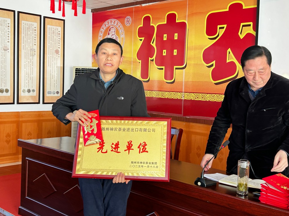 2月6日上午,隨州市神農(nóng)茶業(yè)集團(tuán)2024年度表彰大會順利召開,集團(tuán)旗下涉茶產(chǎn)業(yè)8個單位及景區(qū)共計80余人參加,集團(tuán)副總付忠波主持會議、嚴(yán)峰宣讀表彰文件,集團(tuán)董事長劉三運為先進(jìn)單位及個人頒發(fā)榮譽(yù)證書及獎勵。