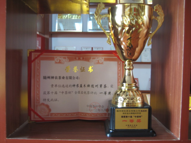- 2013年8月,我公司選送的神農(nóng)益木牌隨州芽茶,榮獲第十屆“中茶杯”全國名優(yōu)茶評比一等獎。