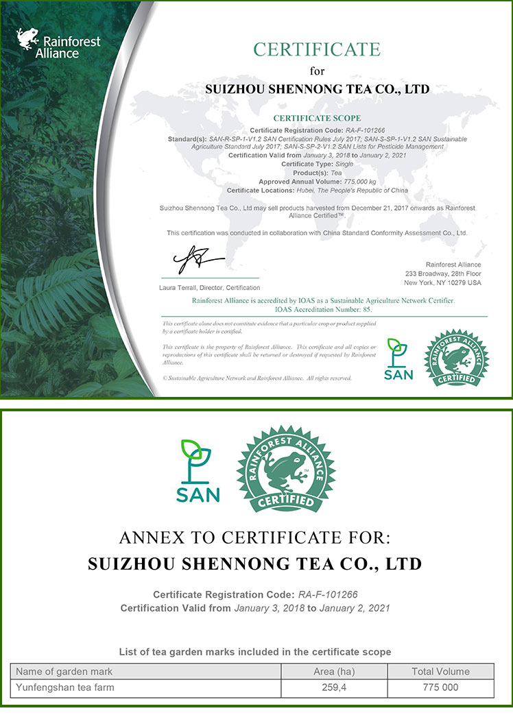 公司通過雨林聯(lián)盟認(rèn)證