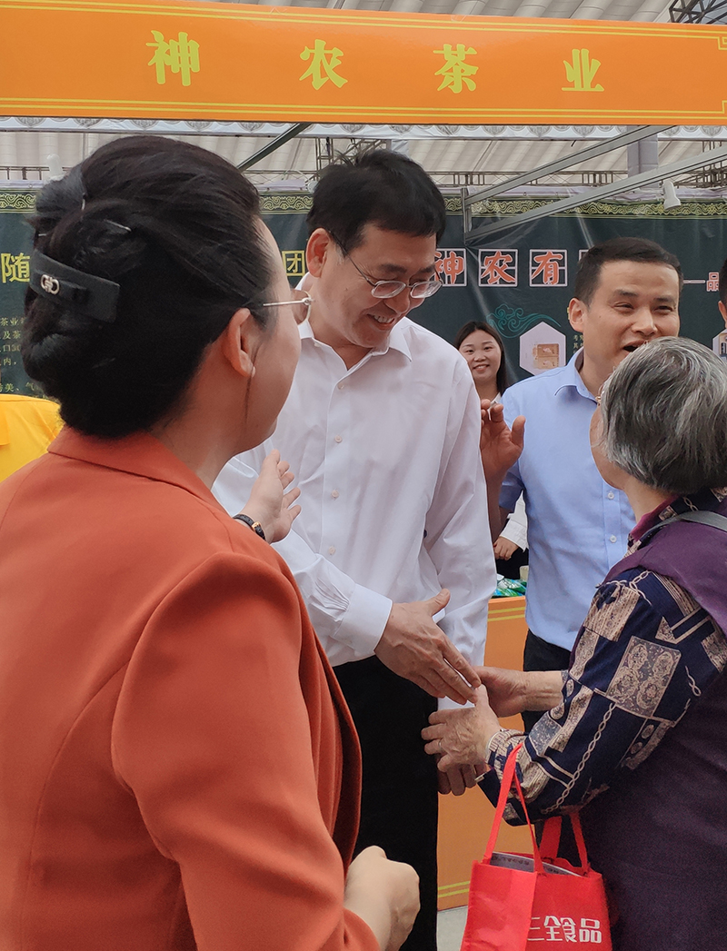 尋根節(jié)期間市委書記陳端峰、市長郭永紅來到神農(nóng)茶業(yè)集團(tuán)展位與消費(fèi)者親切交談。