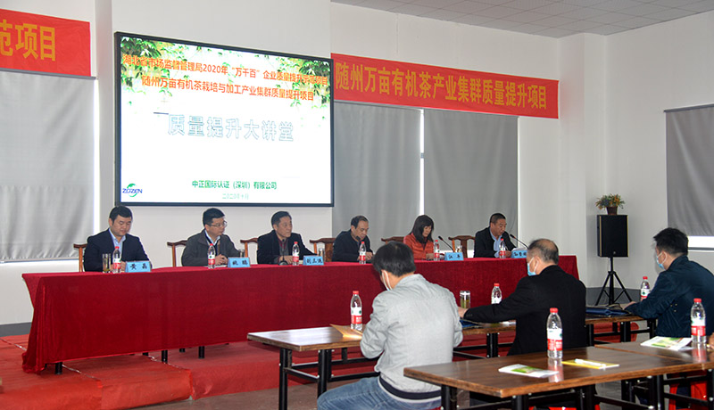 10月30日,隨州萬畝有機茶栽培與加工產(chǎn)業(yè)質(zhì)量提升大講堂在隨州神農(nóng)茶業(yè)有限公司召開,湖北省市場監(jiān)督管理局劉局長、隨州市市場監(jiān)督管理局江局長出席項目召開會.