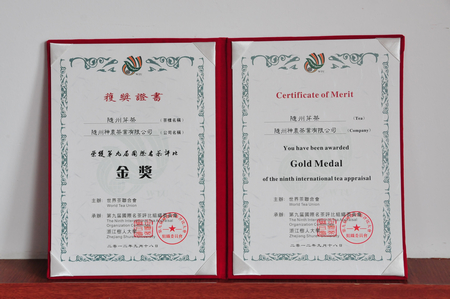 2012年9月,我公司生產(chǎn)的“隨州芽茶”榮獲第九屆國(guó)際名茶評(píng)比“金獎(jiǎng)”