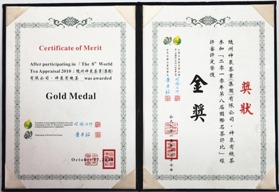 2010年10月,我公司選送的“神農(nóng)有機茶”榮獲第八屆國際名茶評比“金獎”