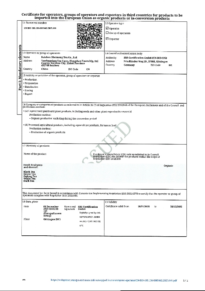 歐盟美國(guó)日本加拿大有機(jī)認(rèn)證證書